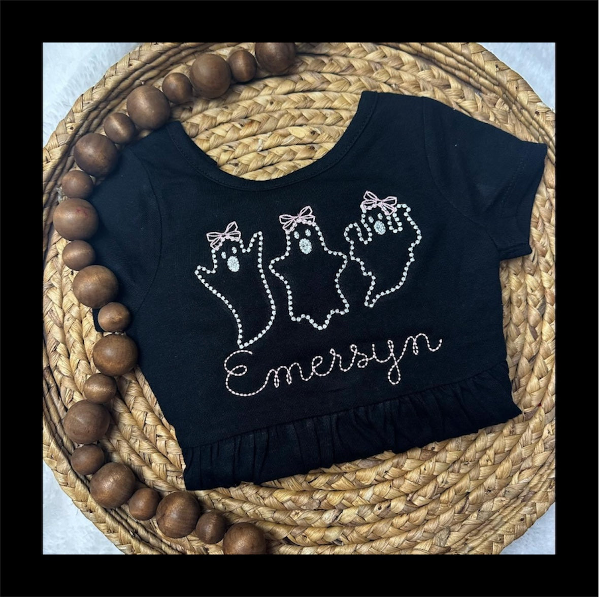The bows and name will be stitched in pink unless otherwise requested!