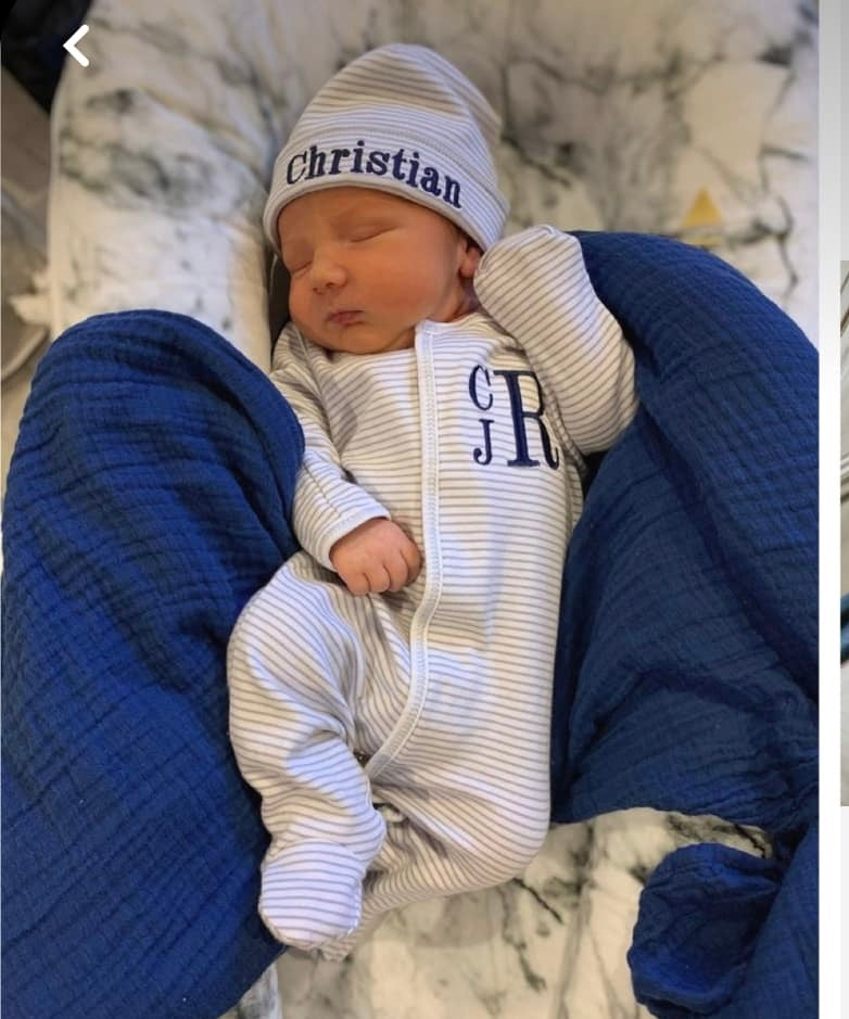 The name/initials will be embroidered as his "mMo".